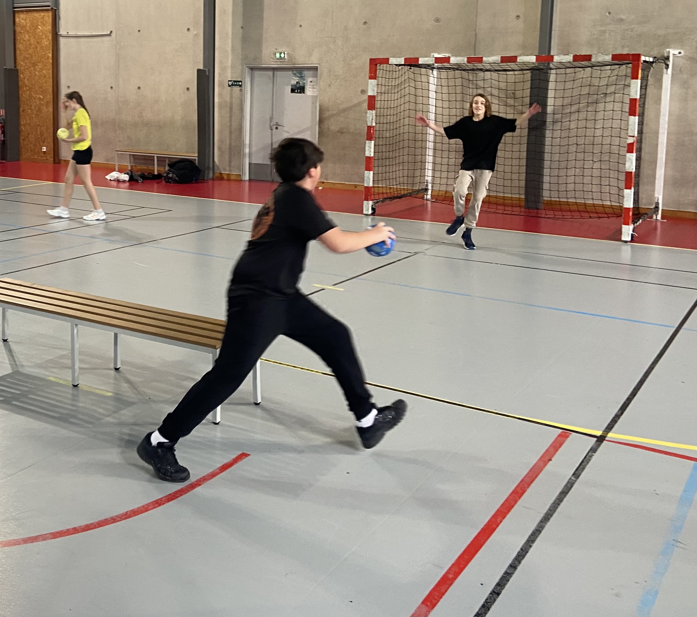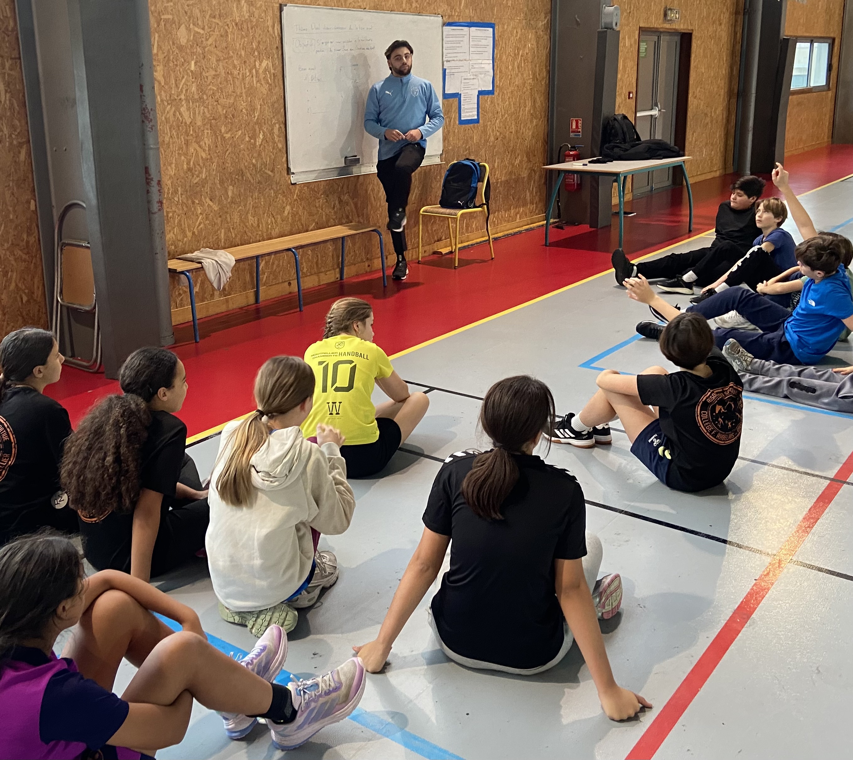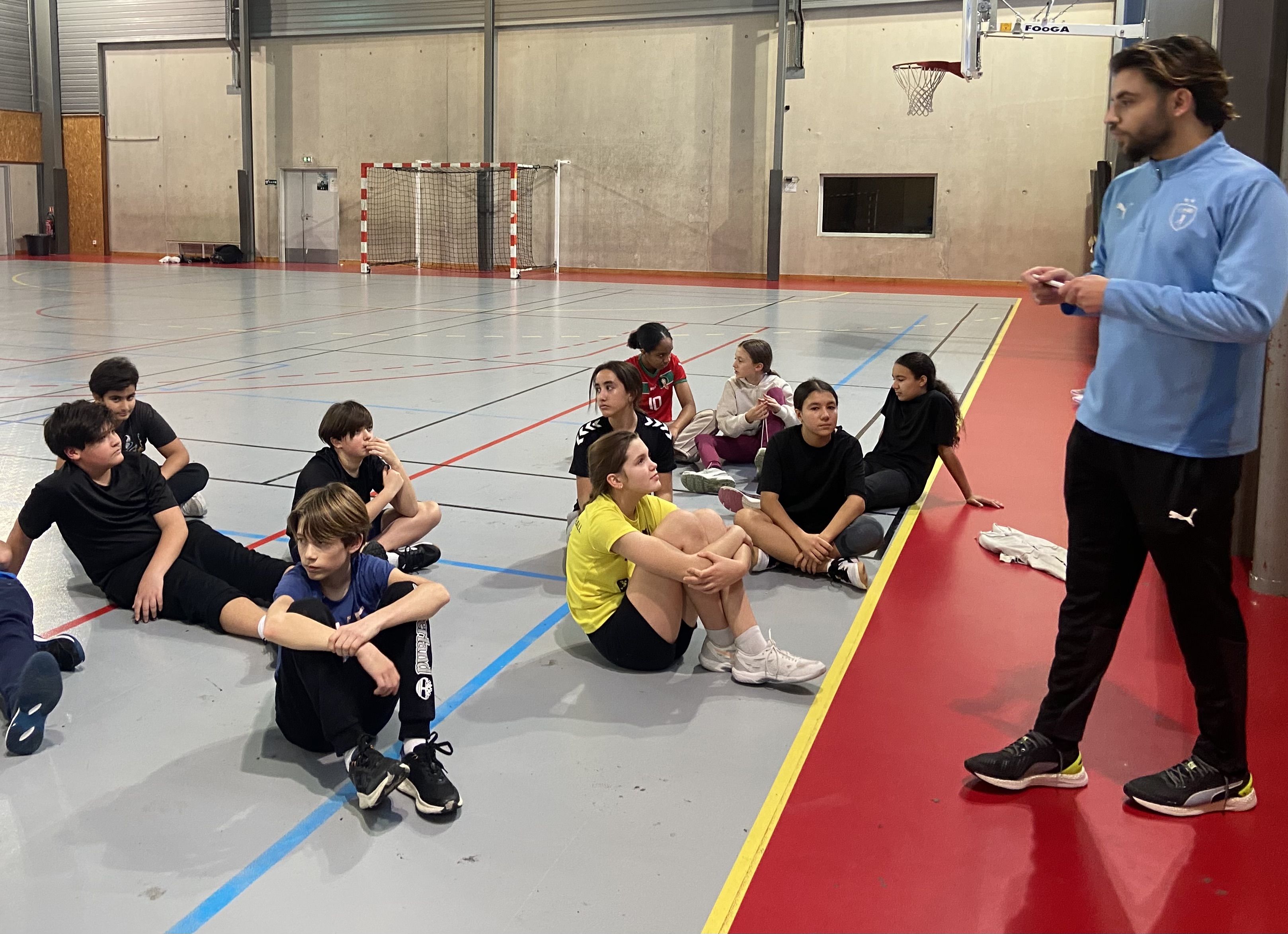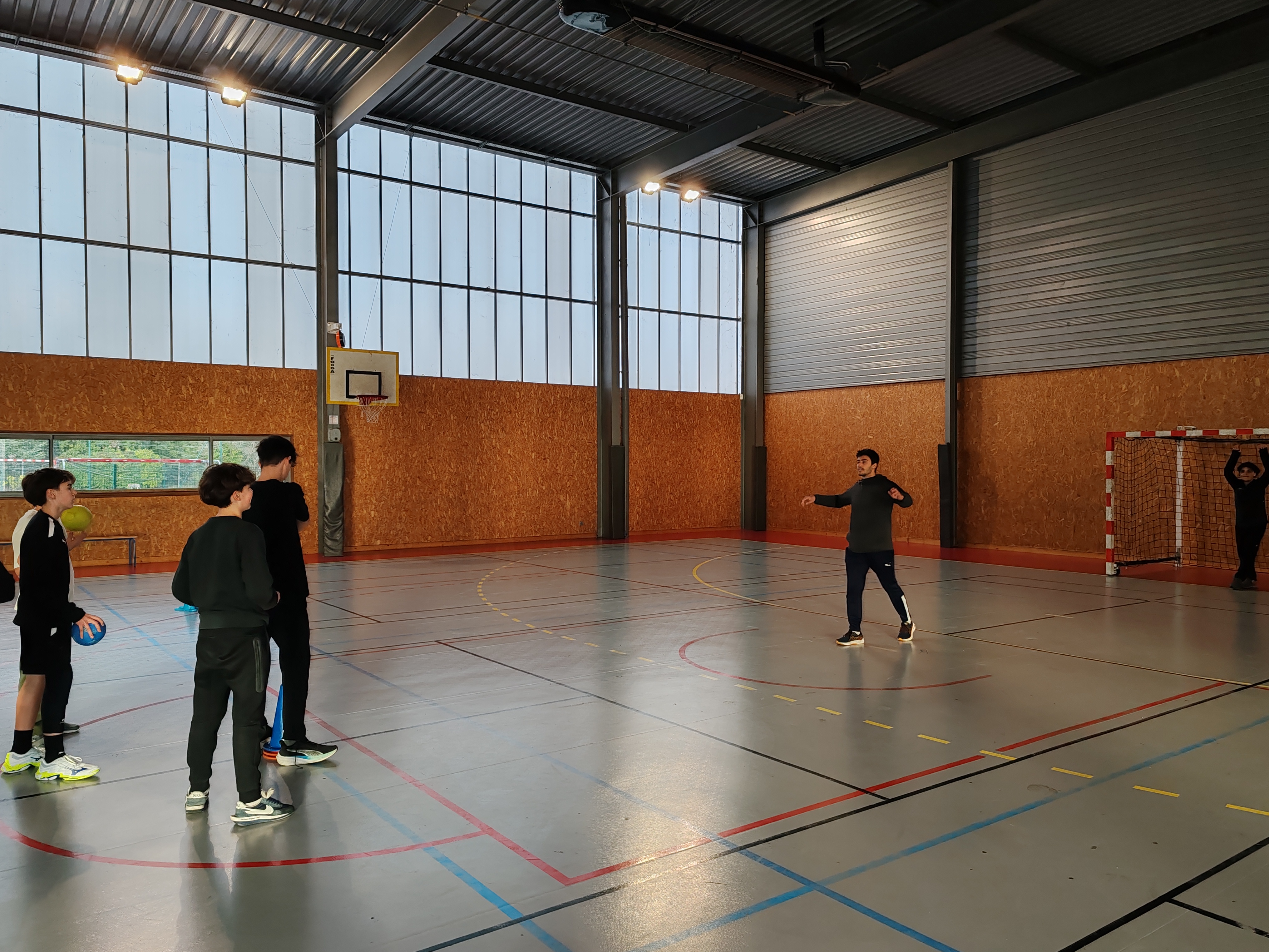 Nos élèves de 6ème et 5ème de la Section Sportive Handball, ont eu la chance d'être entrainés par Lucas GRASSET et Antoine POITEVIN, entraineurs au Montpellier HANDBALL , sur la thématique du Jeu de la la base avant.