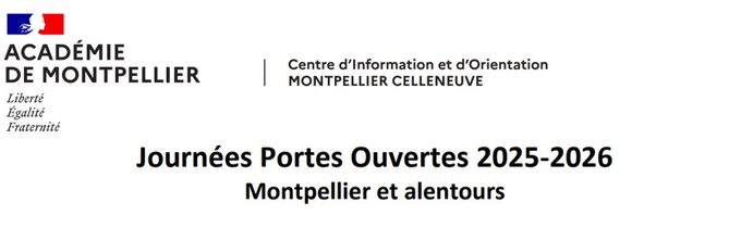 Madame, Monsieur, ci-joint un tableau récapitulatif des journées portes ouvertes des lycées de Montpellier et ses alentours.