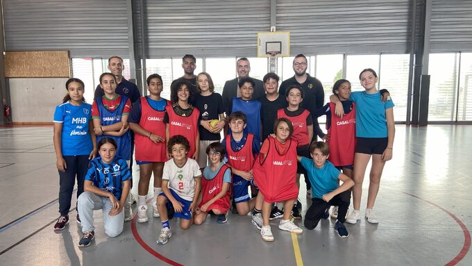 M. Mathieu, responsable de la section sportive handball du Collège, a accueilli des membres du club de Montpellier Chamberte Handball.
